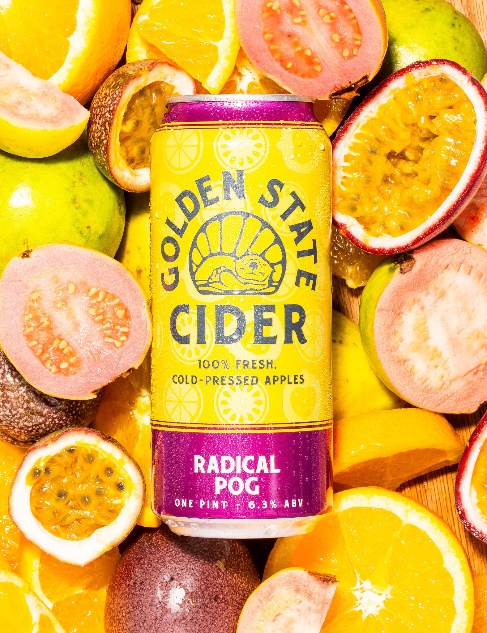 Made with 100% fresh-pressed West Coast apples, crafted with fresh passionfruit, orange & guava.