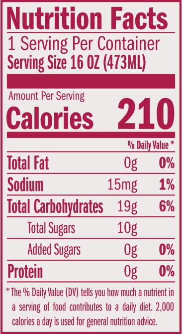 - 100% fresh, cold-pressed West Coast apples, and hibiscus flowers from Morocco